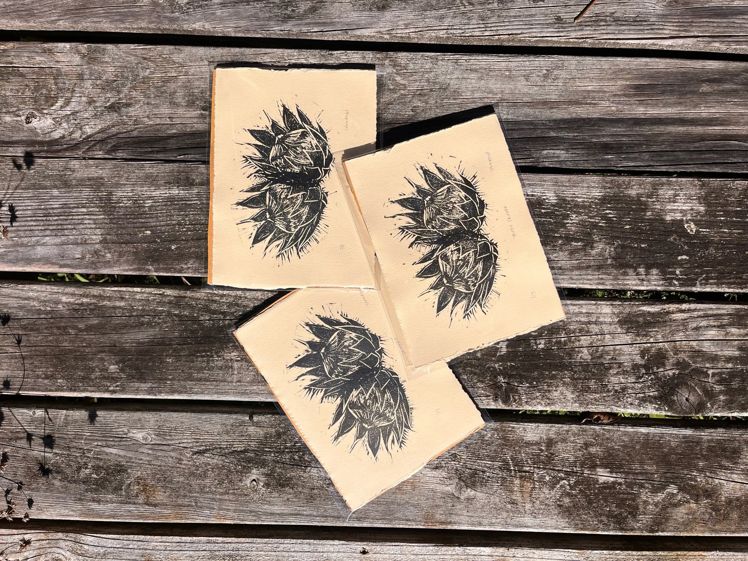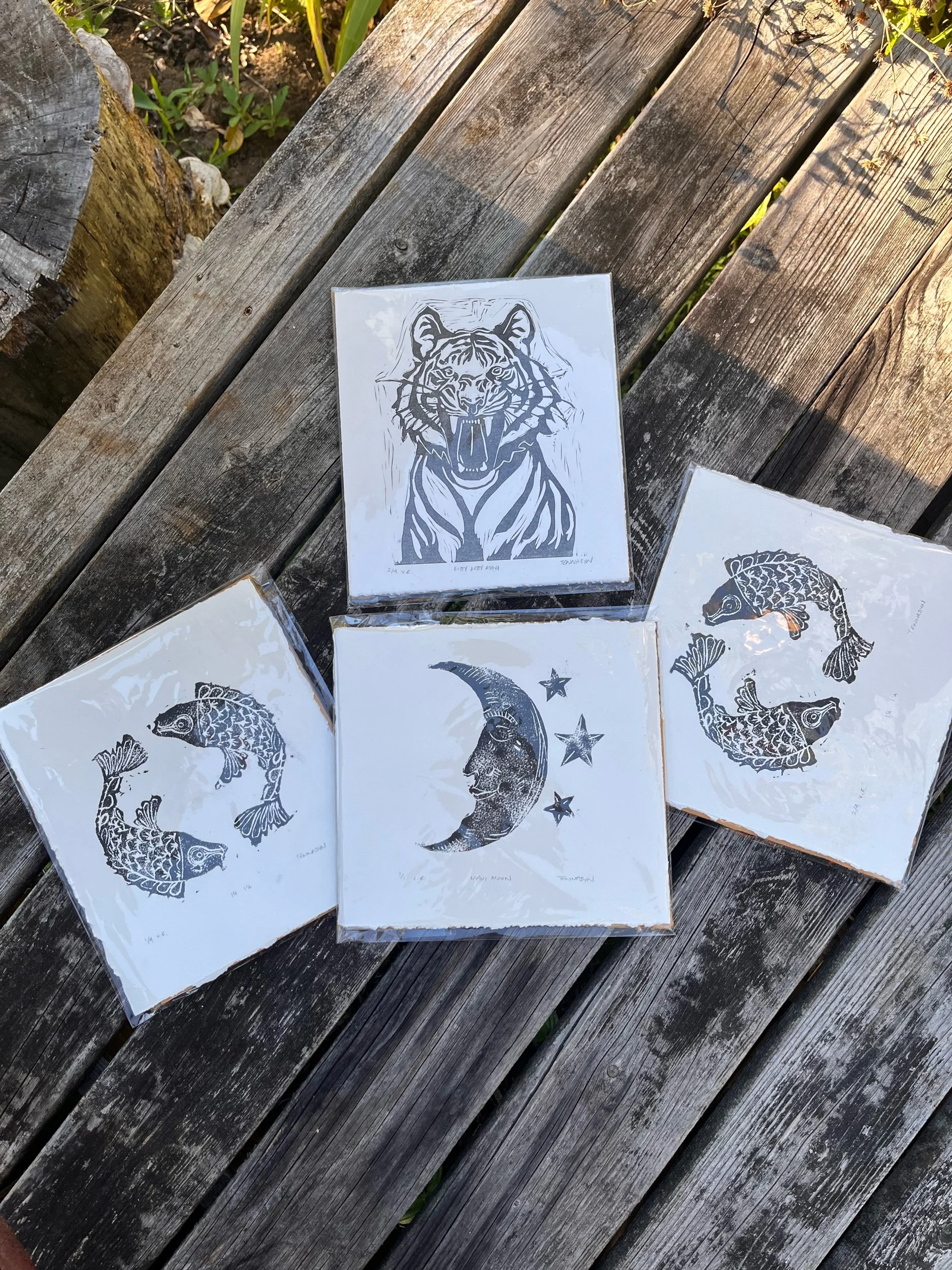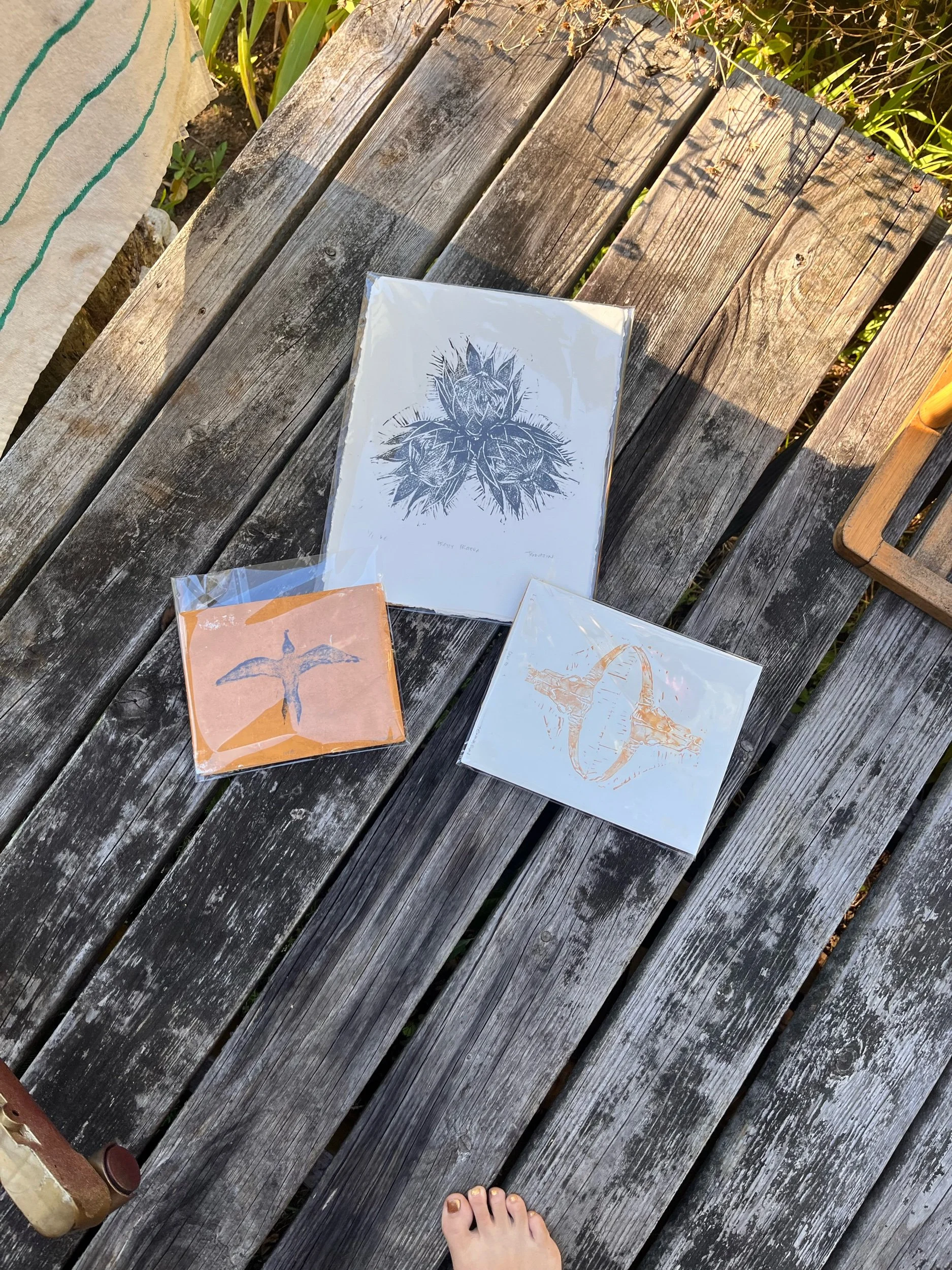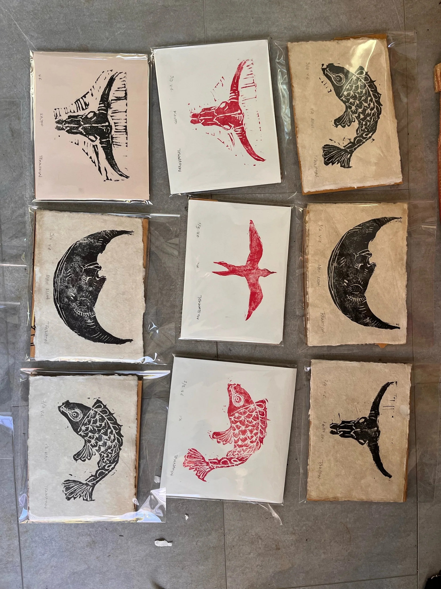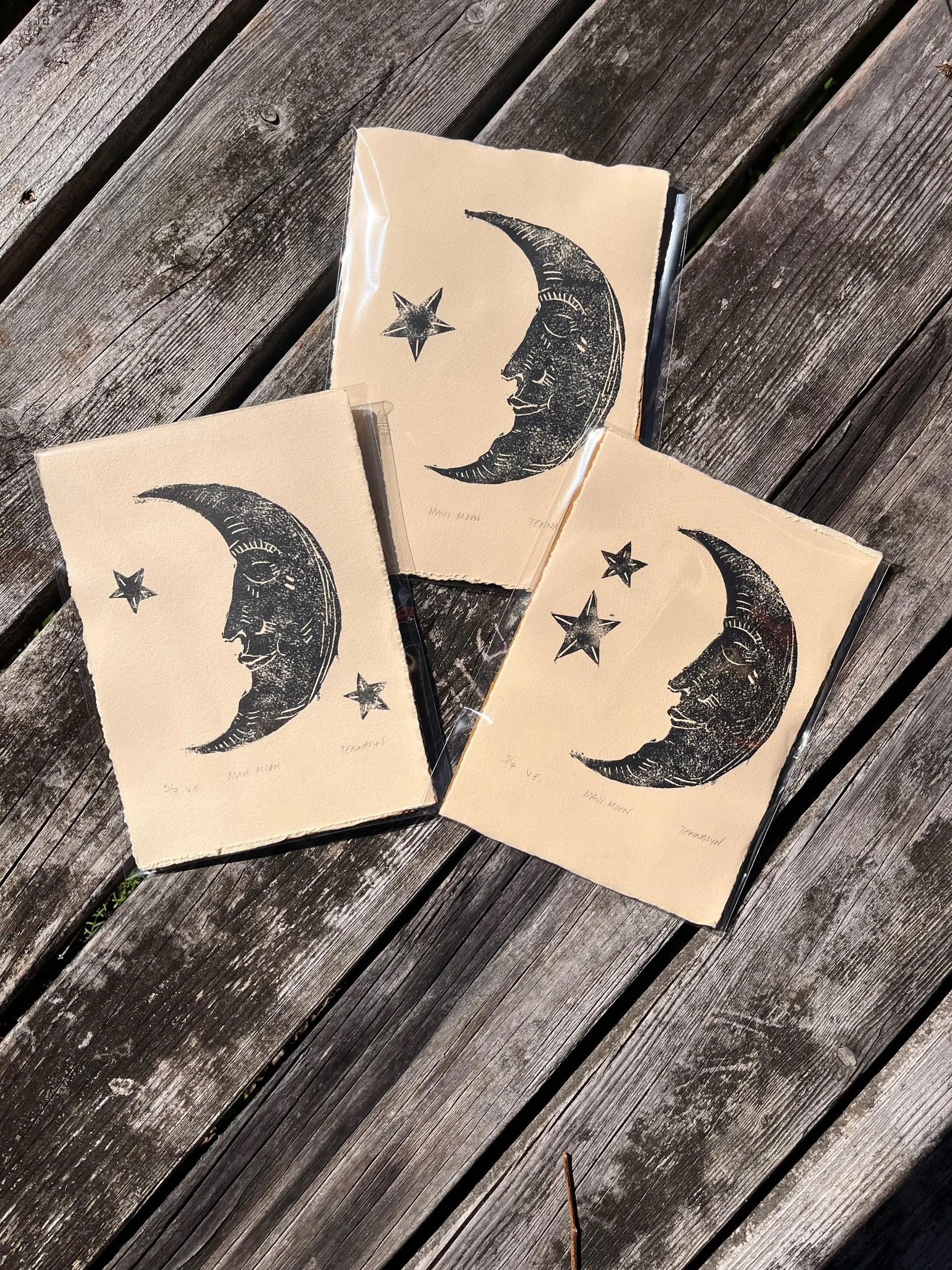 All prints are made completely by hand, so no two items come out exactly alike. Every swipe of ink, every placement, every tiny variation is part of the charm. It’s wearable art with a handmade soul, created to feel special every time you put it on.